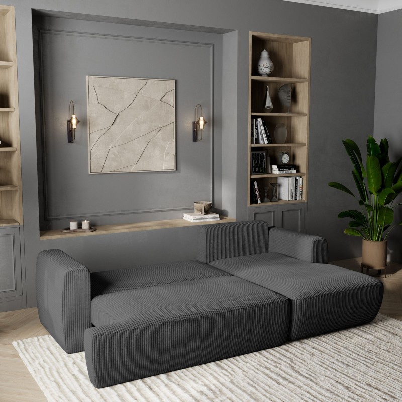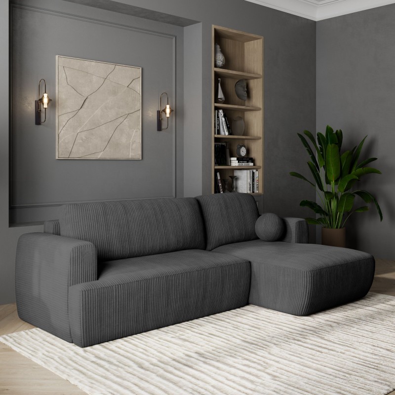 Masseno Narożnik SENTI z funkcją spania i pojemnikiem na pościel Narozniki L, Rozkładana sofa - Grafitowy, POSO 34