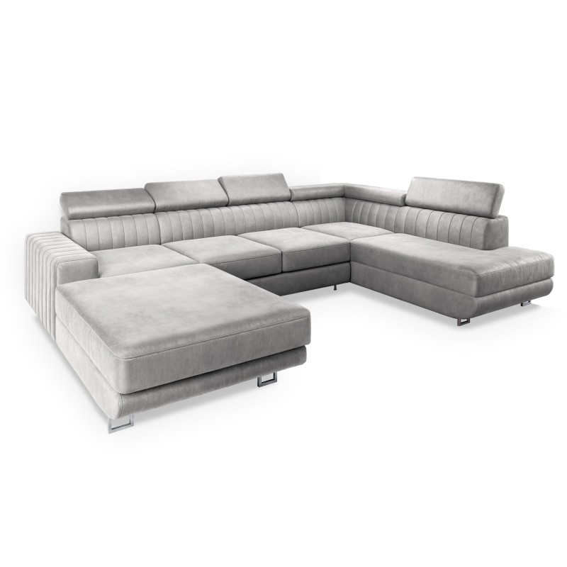 Masseno Narożnik SIENA z funkcją spania i pojemnikiem na pościel Narozniki U, Rozkładana sofa - Jasnoszary, MONOLITH 84