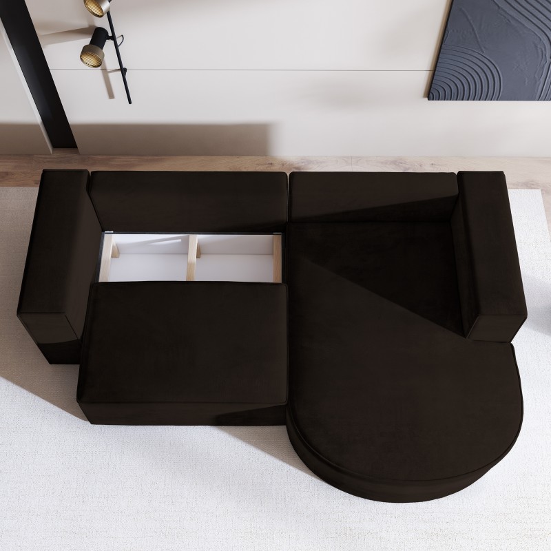 Masseno Narożnik SORELA z funkcją spania i pojemnikiem na pościel Narozniki L, Rozkładana sofa - Brązowy, MONOLITH 29