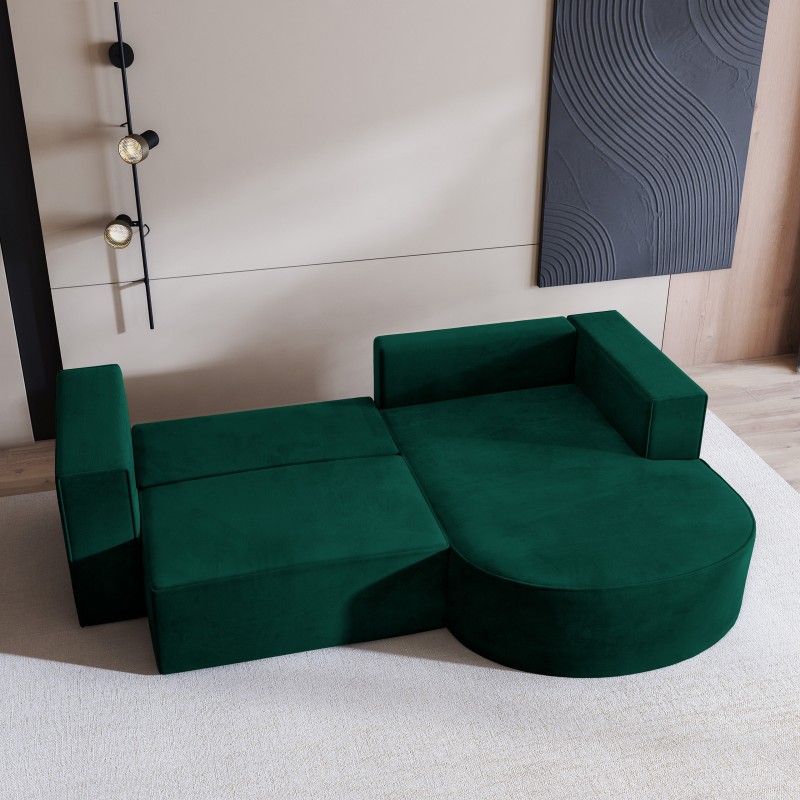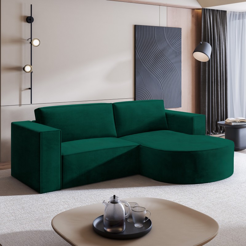 Masseno Narożnik SORELA z funkcją spania i pojemnikiem na pościel Narozniki L, Rozkładana sofa - Butelkowa zieleń, MONOLITH 37
