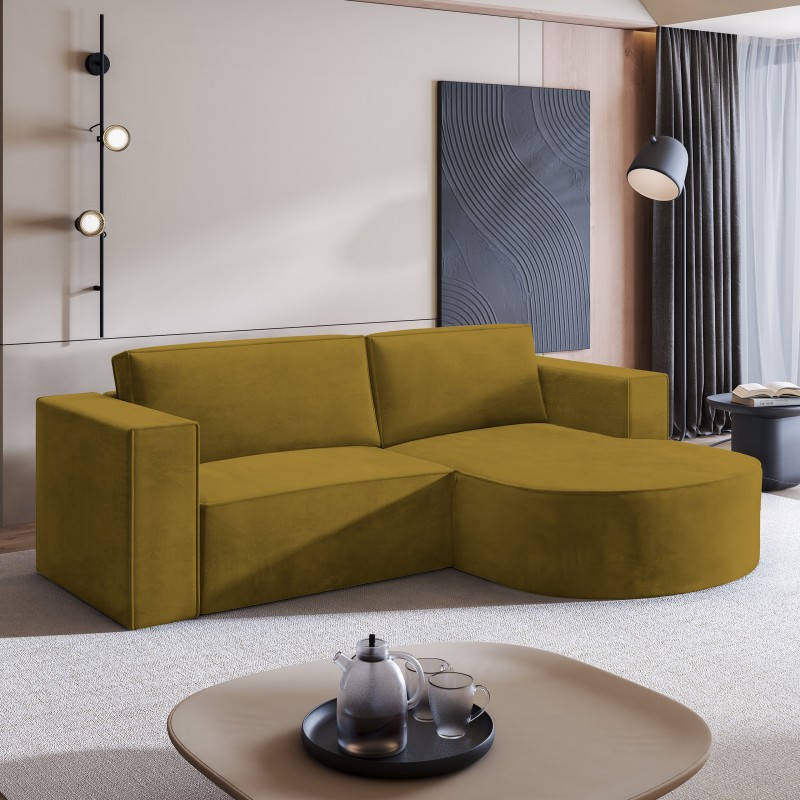 Masseno Narożnik SORELA z funkcją spania i pojemnikiem na pościel Narozniki L, Rozkładana sofa - Żółty, MONOLITH 48