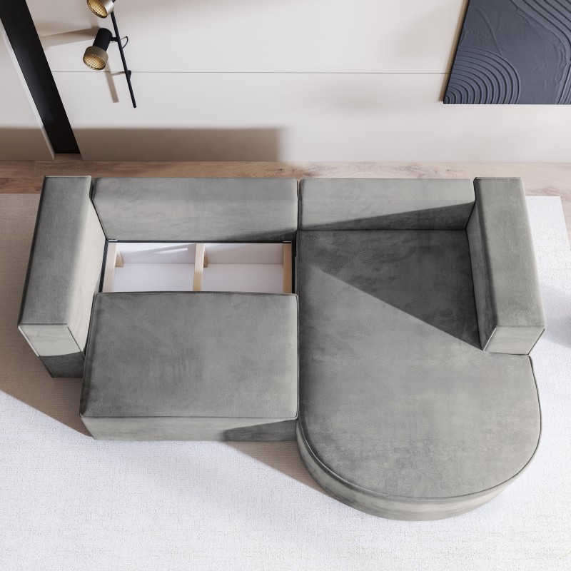 Masseno Narożnik SORELA z funkcją spania i pojemnikiem na pościel Narozniki L, Rozkładana sofa - Jasnoszary, MONOLITH 84
