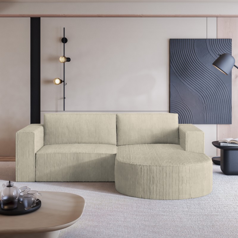 Masseno Narożnik SORELA z funkcją spania i pojemnikiem na pościel Narozniki L, Rozkładana sofa - Kremowy, POSO 100