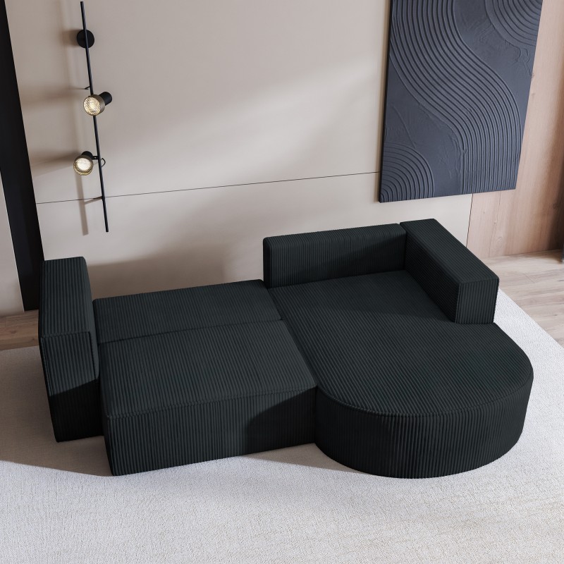 Masseno Narożnik SORELA z funkcją spania i pojemnikiem na pościel Narozniki L, Rozkładana sofa - Czarny, POSO 135