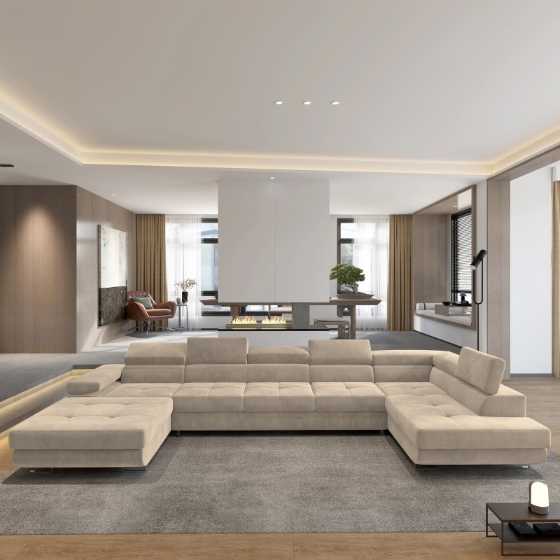 Poznaj narożnik TORIVA, który dzięki swojej imponującej powierzchni i eleganckiemu designowi idealnie wpisze się w przestrzeń każdego salonu. Został stworzony z myślą o rodzinach ceniących zarówno stylową aranżację wnętrz, jak i wyjątkową funkcjonalność na co dzień. To mebel, który stanie się centralnym miejscem rodzinnych spotkań i wspólnego wypoczynku.