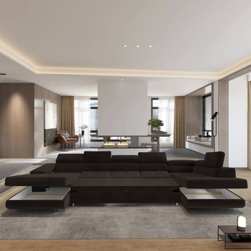 Masseno Narożnik TORIVA z funkcją spania i pojemnikiem na pościel Narozniki U, Rozkładana sofa - Brązowy, MONOLITH 29