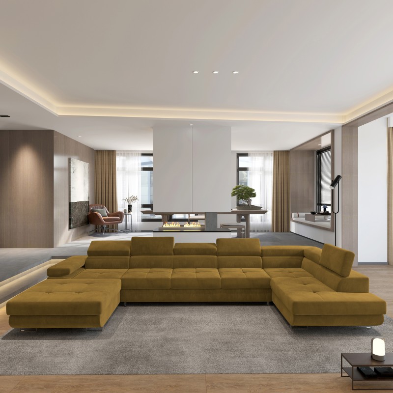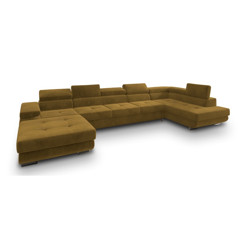 Masseno Narożnik TORIVA z funkcją spania i pojemnikiem na pościel Narozniki U, Rozkładana sofa - Żółty, MONOLITH 48