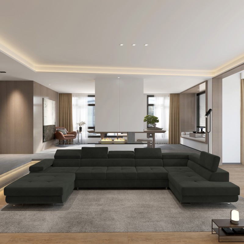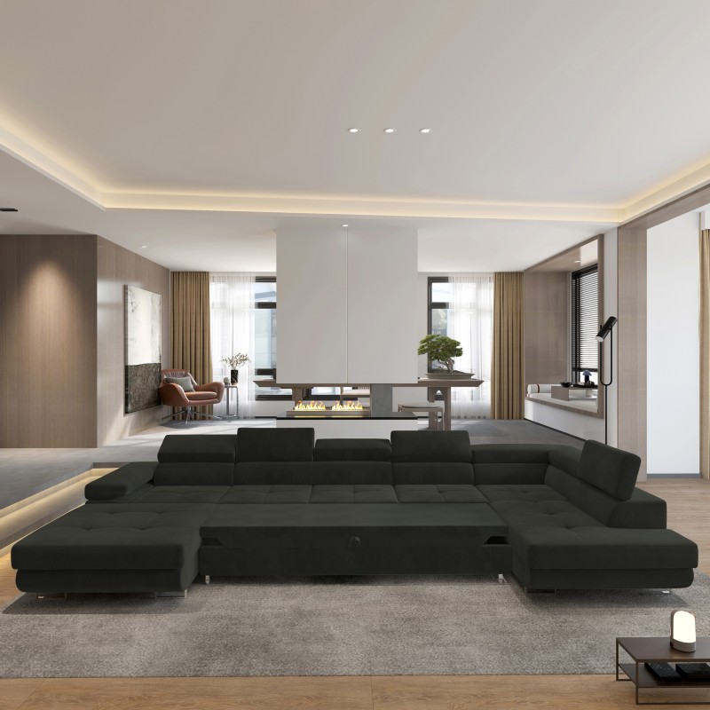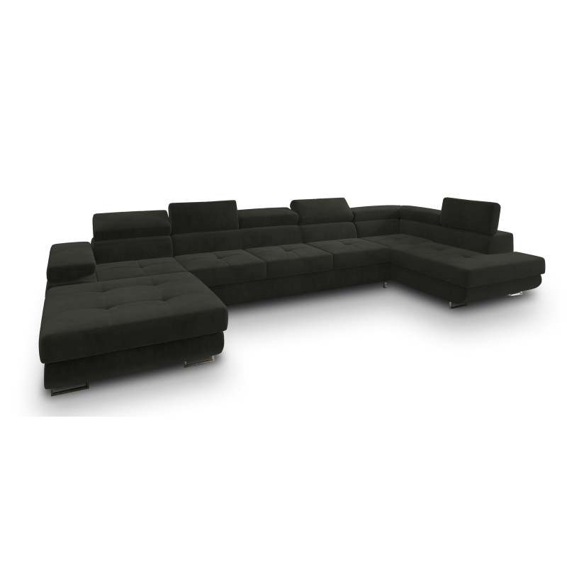 Masseno Narożnik TORIVA z funkcją spania i pojemnikiem na pościel Narozniki U, Rozkładana sofa - Czarny, MONOLITH 95