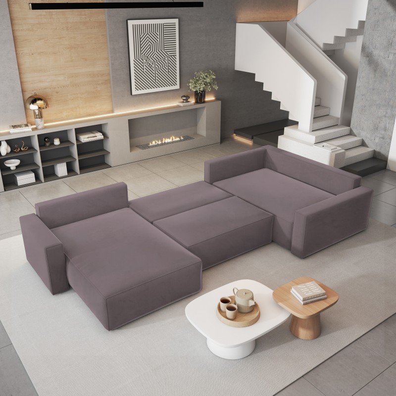 Masseno Narożnik VELAMI z funkcją spania i pojemnikiem na pościel Narozniki U, Rozkładana sofa - Wrzosowy, MONOLITH 62