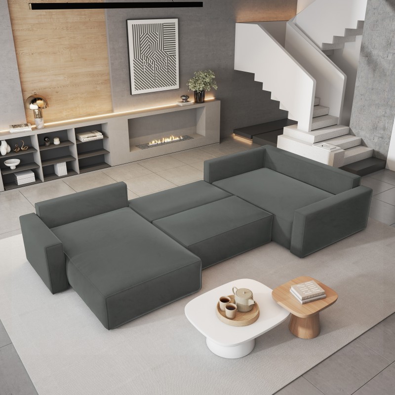 Masseno Narożnik VELAMI z funkcją spania i pojemnikiem na pościel Narozniki U, Rozkładana sofa - Szary, MONOLITH 85