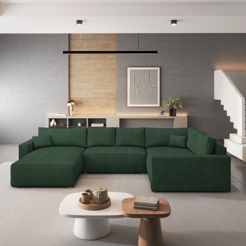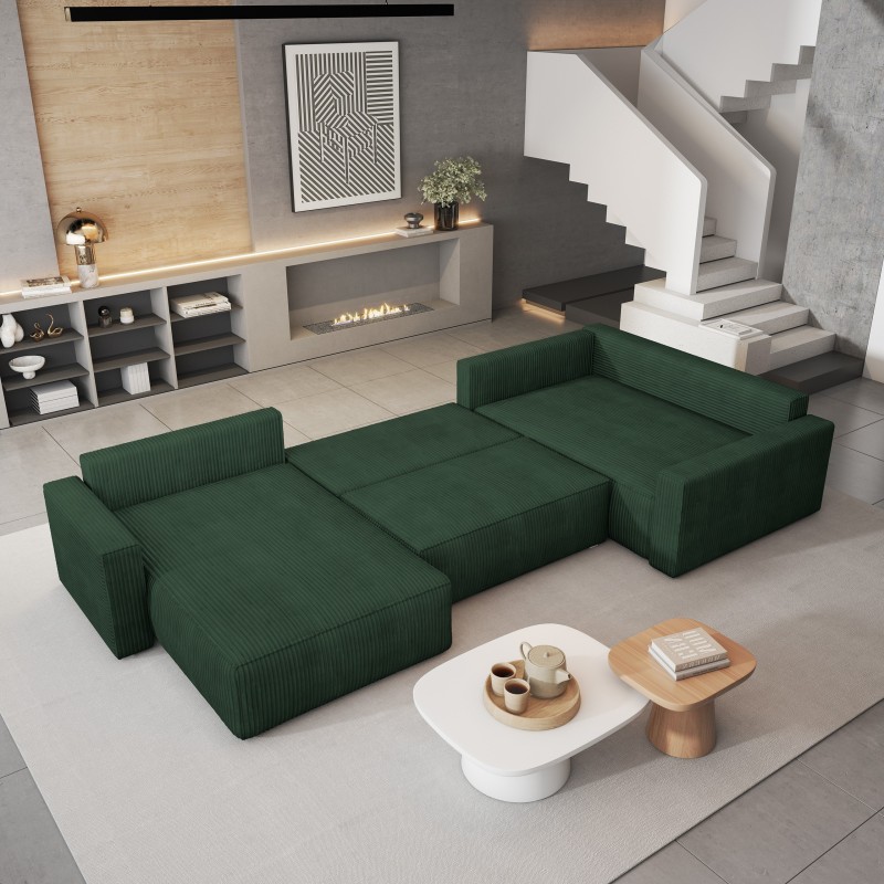 Masseno Narożnik VELAMI z funkcją spania i pojemnikiem na pościel Narozniki U, Rozkładana sofa - Zielony, POSO 14