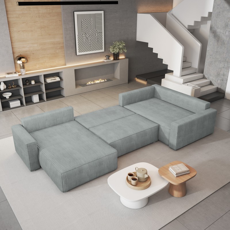 Masseno Narożnik VELAMI z funkcją spania i pojemnikiem na pościel Narozniki U, Rozkładana sofa - Jasnoszary, POSO 55