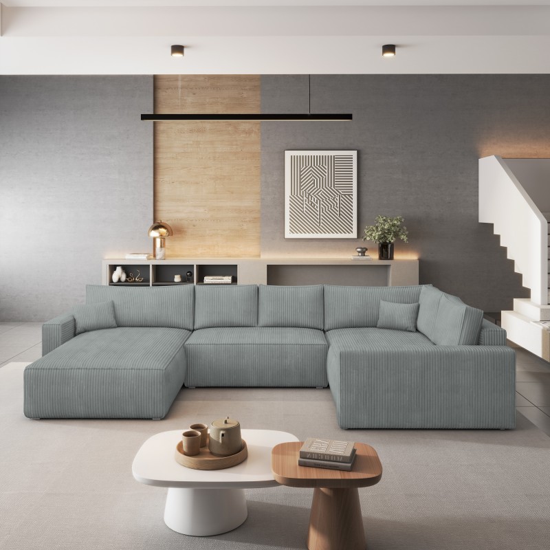 Poznaj narożnik VELAMI – duży, wygodny i stylowy mebel wypoczynkowy, który wniesie do Twojego salonu ponadczasową elegancję i wyjątkową funkcjonalność. Dzięki przestronnej formie zapewnia komfortową przestrzeń wypoczynkową dla całej rodziny, idealnie nadając się zarówno na codzienny relaks, jak i spotkania towarzyskie.