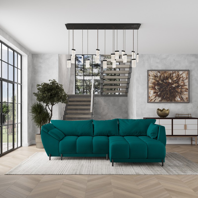 VESTANO nie tylko dobrze wygląda, ale również zaskakuje funkcjonalnością. Wbudowana funkcja spania pozwala w kilka sekund rozłożyć narożnik i stworzyć wygodne miejsce do snu, idealne dla okazjonalnych dla gości. Wewnątrz znajdziesz również duży pojemnik na pościel, który z łatwością pomieści tekstylia, poduszki i koce. Wybór strony? Pełna swoboda – narożnik dostępny jest w wersji lewostronnej i prawostronnej, dzięki czemu łatwo dopasujesz go do każdego wnętrza. W tej odsłonie VESTANO zyskuje zupełnie nowy charakter – wszystko za sprawą tkaniny Matt Velvet. Jej subtelny połysk i gładka, aksamitna struktura dodają meblowi elegancji i przytulności zarazem. Welur pięknie odbija światło, tworząc szlachetne refleksy, a przy tym jest miękki, odporny na ścieranie i łatwy do utrzymania w czystości. Świetnie nadaje się do domu z dziećmi i zwierzętami. To wybór idealny dla tych, którzy oczekują nie tylko stylu, ale i jakości. Kolory Matt Velvet podkreślają luksusowy charakter narożnika.