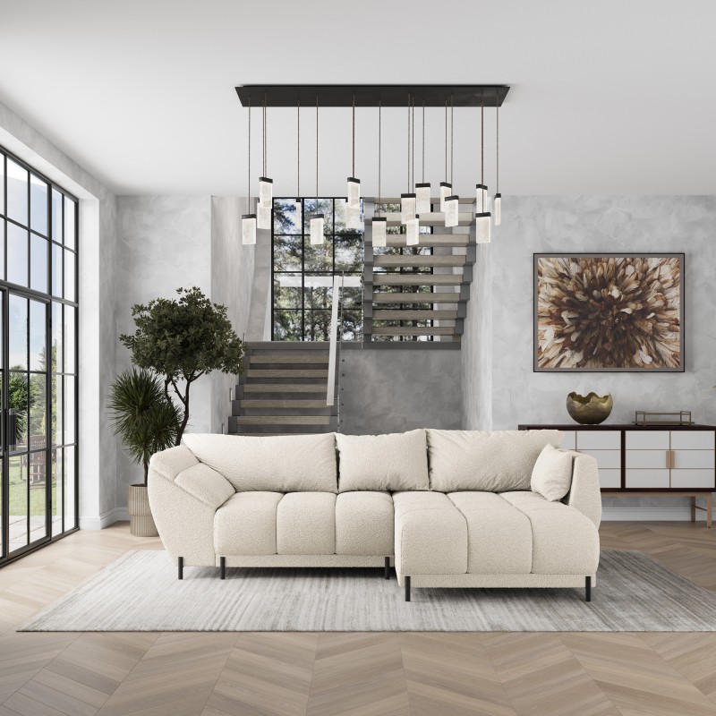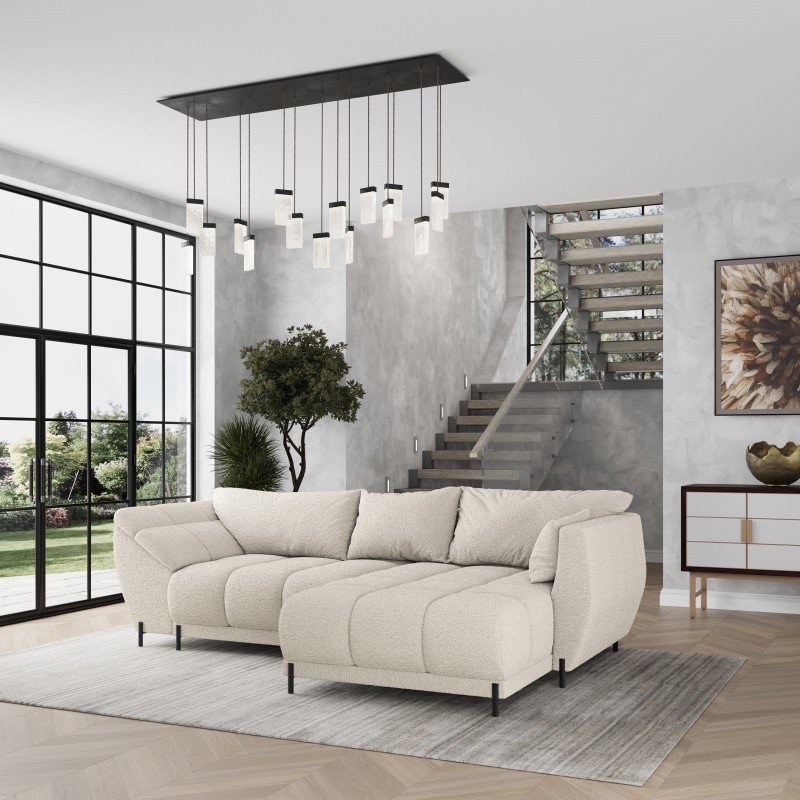 Nie każdy narożnik musi być masywny. VESTANO to dowód na to, że komfort może iść w parze z optyczną lekkością i wyrafinowanym designem. Wyróżnia go podniesiona bryła oparta na wysokich, smukłych nóżkach, które dodają całości nowoczesnej formy i wizualnej lekkości. Dzięki temu VESTANO nie tylko pięknie prezentuje się w przestronnym salonie, ale również świetnie sprawdza się w mniejszych wnętrzach – nie przytłacza, a podkreśla proporcje pomieszczenia.