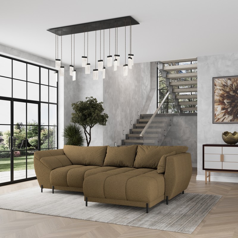 Nie każdy narożnik musi być masywny. VESTANO to dowód na to, że komfort może iść w parze z optyczną lekkością i wyrafinowanym designem. Wyróżnia go podniesiona bryła oparta na wysokich, smukłych nóżkach, które dodają całości nowoczesnej formy i wizualnej lekkości. Dzięki temu VESTANO nie tylko pięknie prezentuje się w przestronnym salonie, ale również świetnie sprawdza się w mniejszych wnętrzach – nie przytłacza, a podkreśla proporcje pomieszczenia.