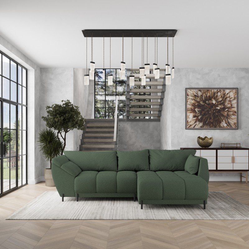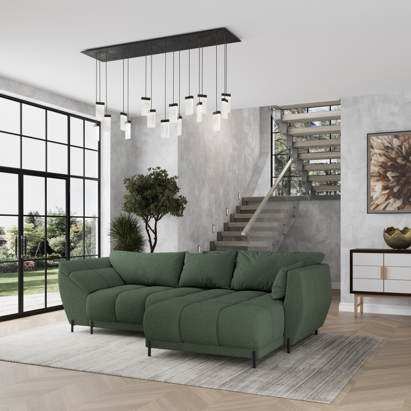 Nie każdy narożnik musi być masywny. VESTANO to dowód na to, że komfort może iść w parze z optyczną lekkością i wyrafinowanym designem. Wyróżnia go podniesiona bryła oparta na wysokich, smukłych nóżkach, które dodają całości nowoczesnej formy i wizualnej lekkości. Dzięki temu VESTANO nie tylko pięknie prezentuje się w przestronnym salonie, ale również świetnie sprawdza się w mniejszych wnętrzach – nie przytłacza, a podkreśla proporcje pomieszczenia.