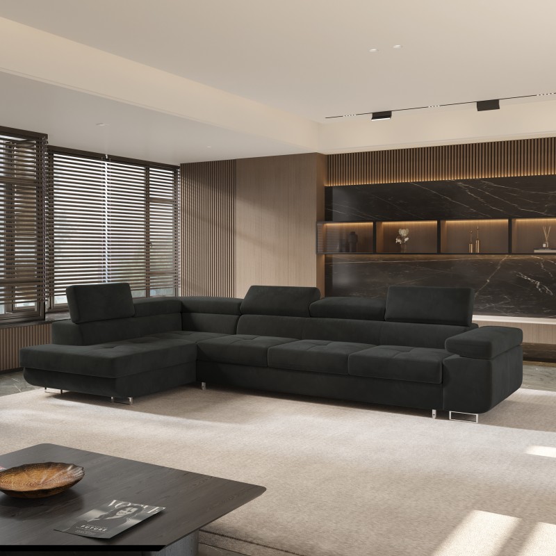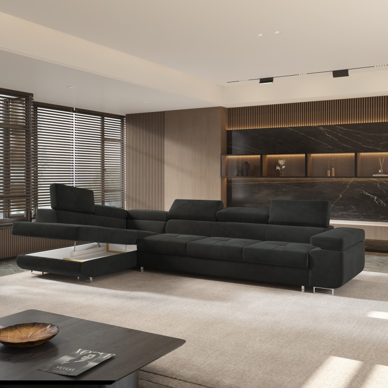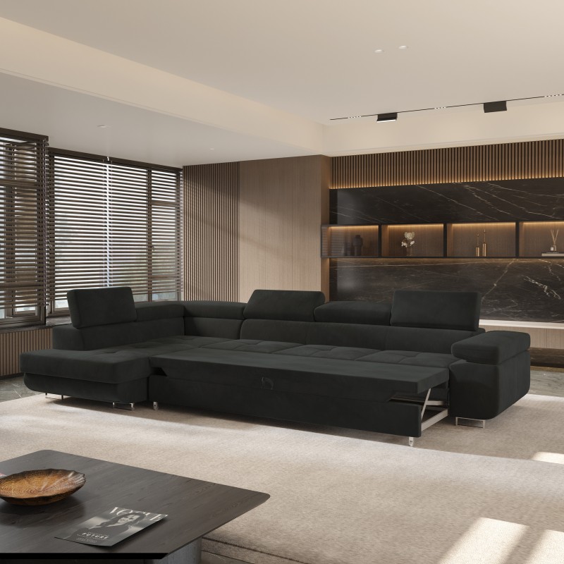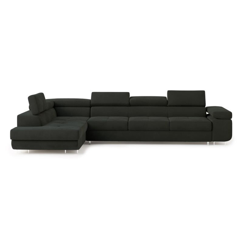 Masseno Narożnik VICENTE z funkcją spania i pojemnikiem na pościel Narozniki L, Rozkładana sofa - Czarny, MONOLITH 95