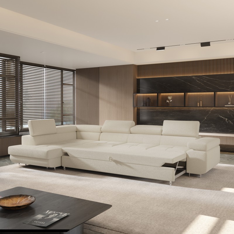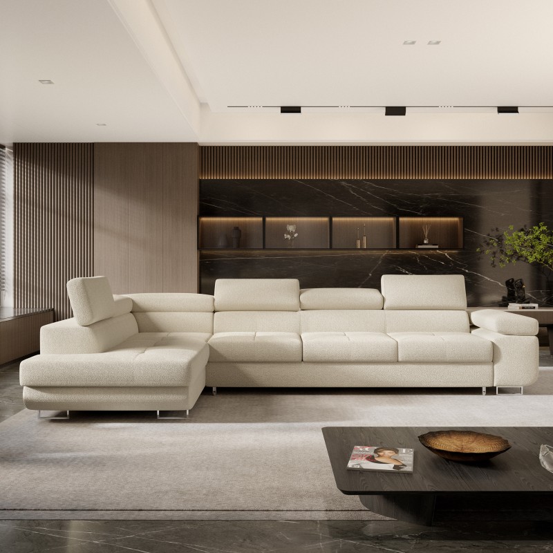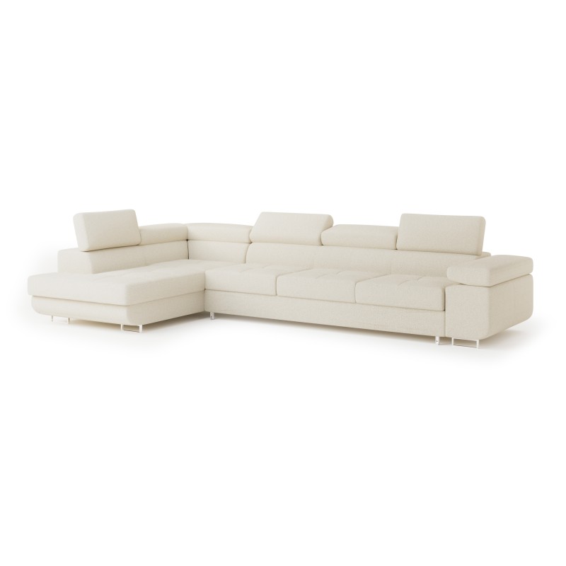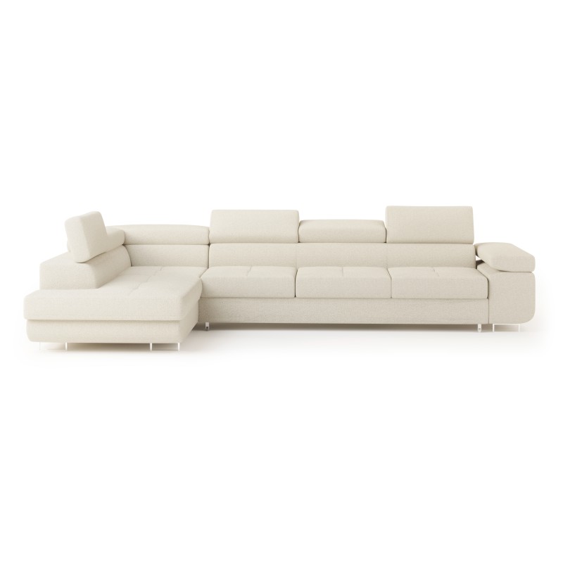 Masseno Narożnik VICENTE z funkcją spania i pojemnikiem na pościel Narozniki L, Rozkładana sofa - Kremowy, QUELLE 02