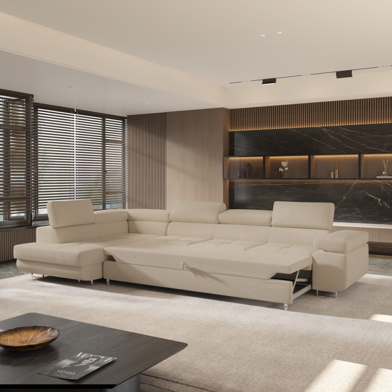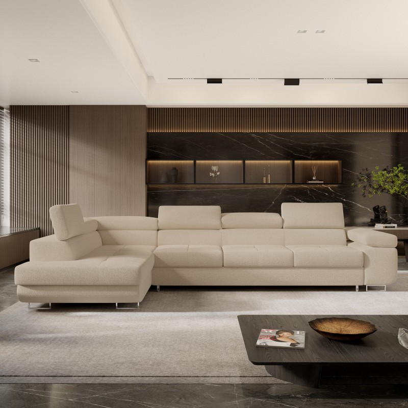 Masseno Narożnik VICENTE z funkcją spania i pojemnikiem na pościel Narozniki L, Rozkładana sofa - Beżowy, QUELLE 05