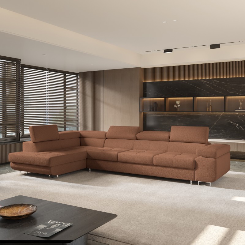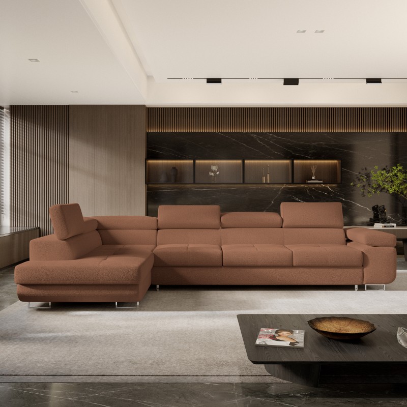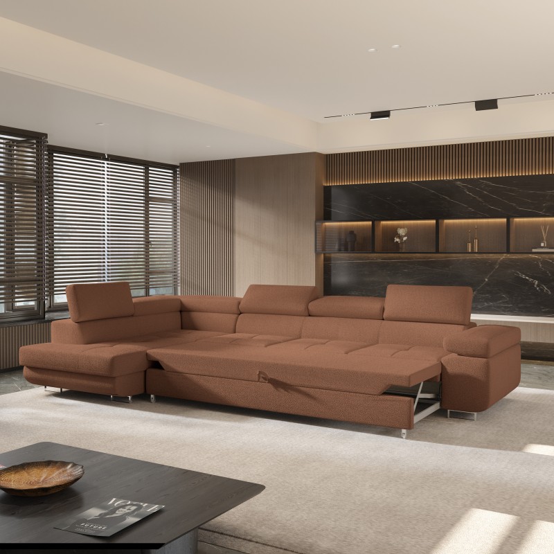 Masseno Narożnik VICENTE z funkcją spania i pojemnikiem na pościel Narozniki L, Rozkładana sofa - Miedziany, QUELLE 54