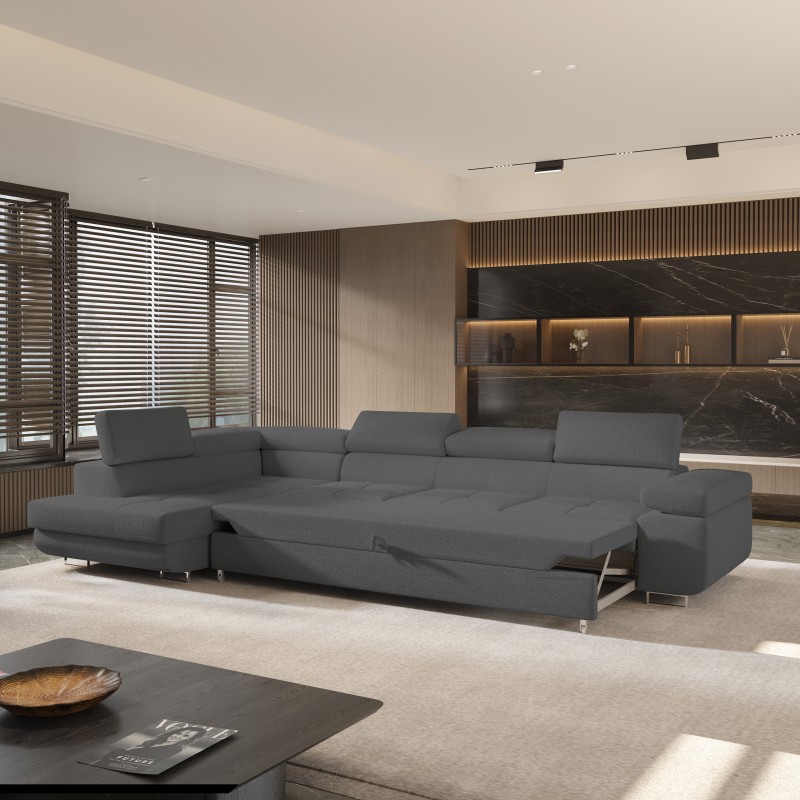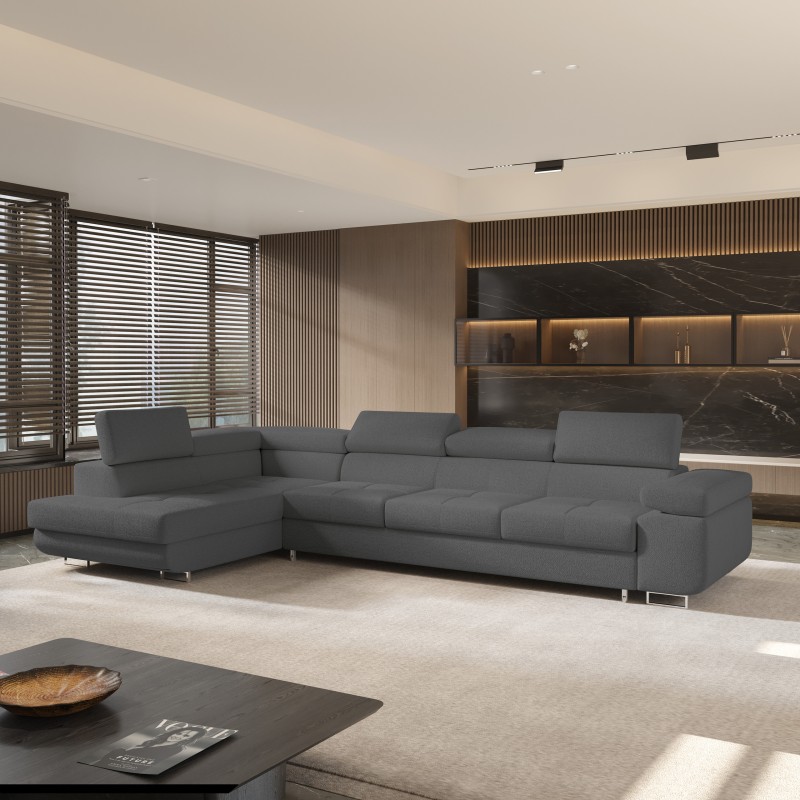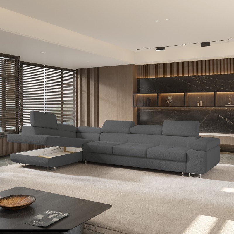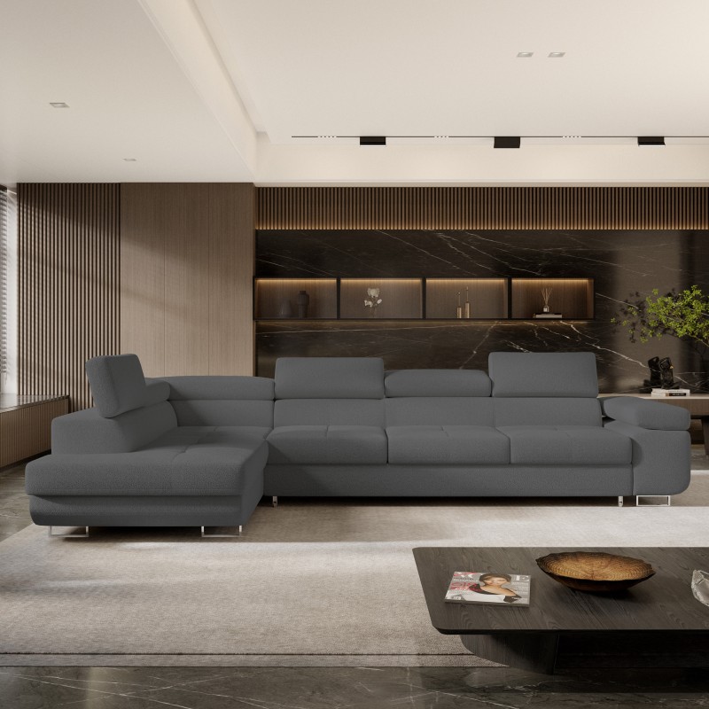 Masseno Narożnik VICENTE z funkcją spania i pojemnikiem na pościel Narozniki L, Rozkładana sofa - Szary, QUELLE 92