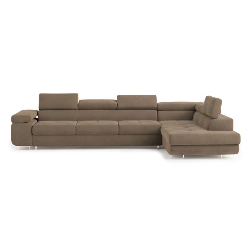 Masseno Narożnik VICENTE z funkcją spania i pojemnikiem na pościel Narozniki L, Rozkładana sofa - Beżowy, MONOLITH 09