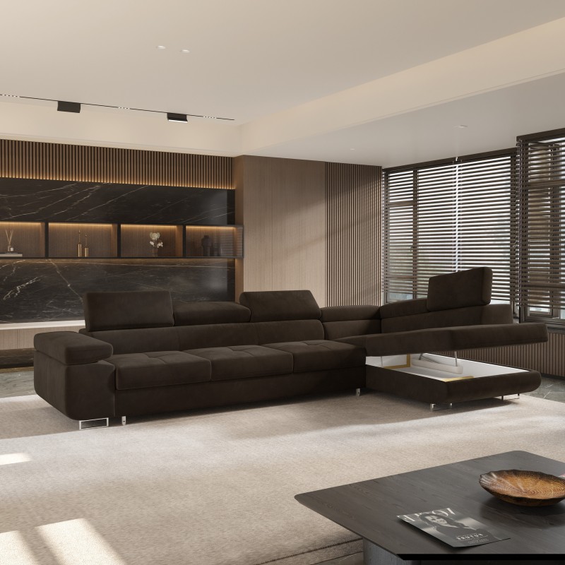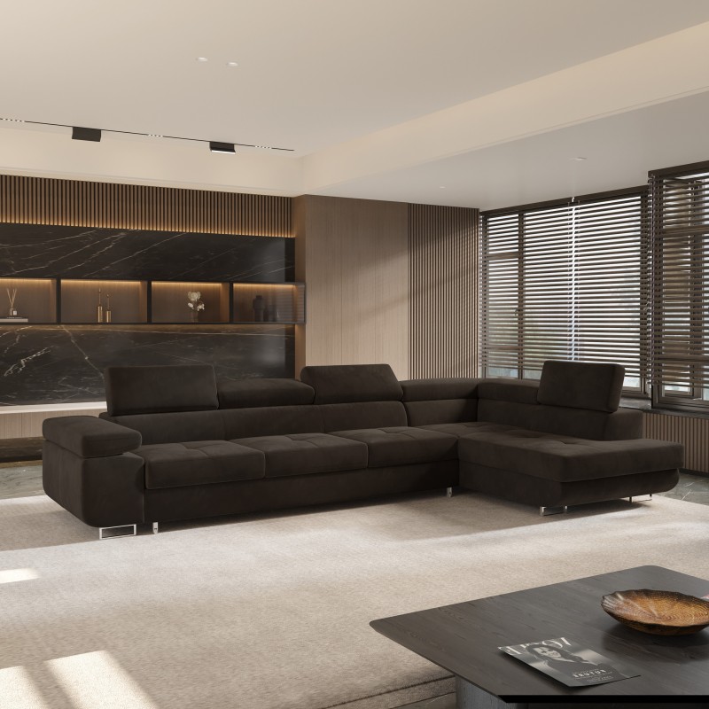 VICENTE to narożnik stworzony dla tych, którzy pragną połączyć nowoczesny design, najwyższy poziom wygody i przestrzeń do wspólnego spędzania czasu. Jego elegancka, dopracowana w każdym detalu forma zachwyca smukłymi liniami, wygodnym podłokietnikiem i regulowanymi zagłówkami, które pozwalają dopasować mebel do indywidualnych preferencji.