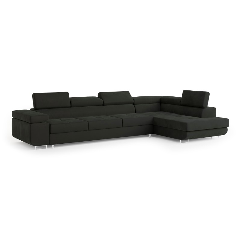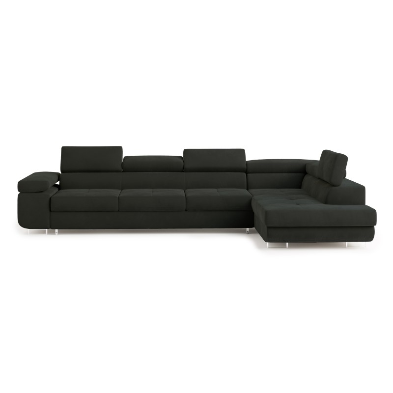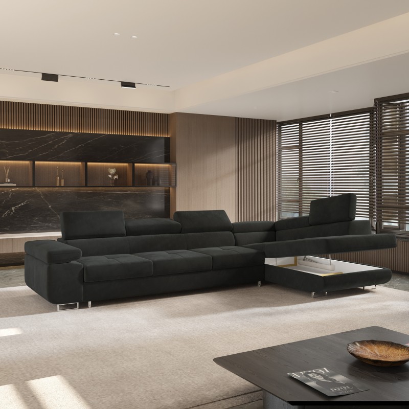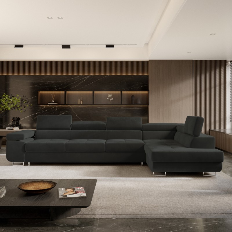 Masseno Narożnik VICENTE z funkcją spania i pojemnikiem na pościel Narozniki L, Rozkładana sofa - Czarny, MONOLITH 95