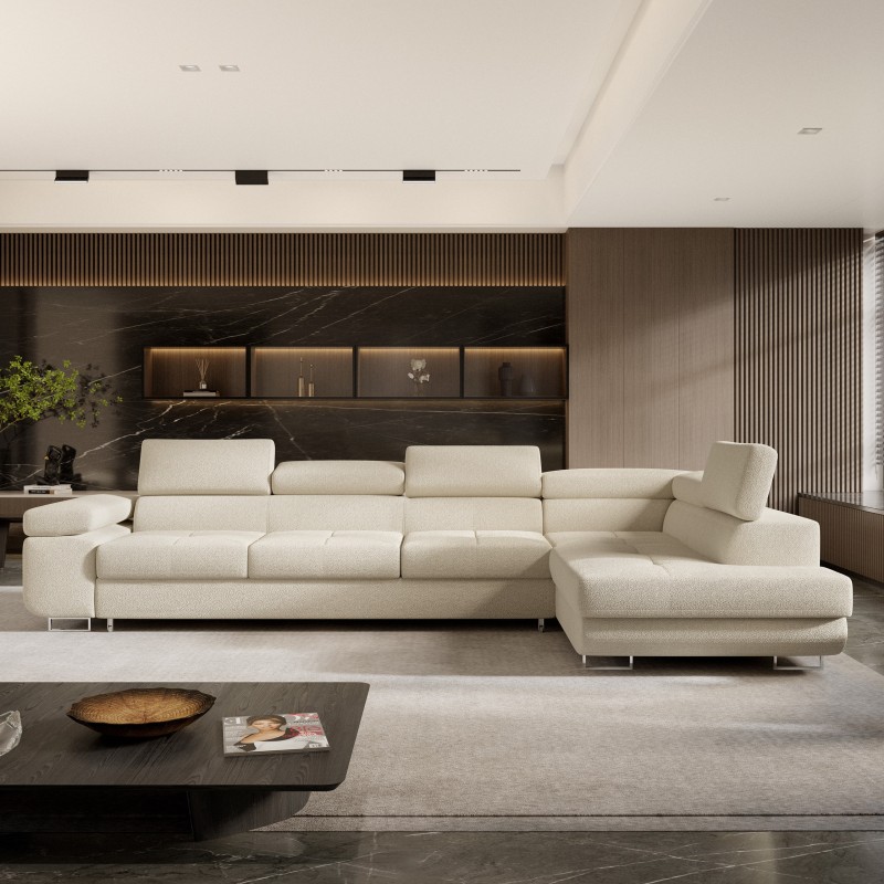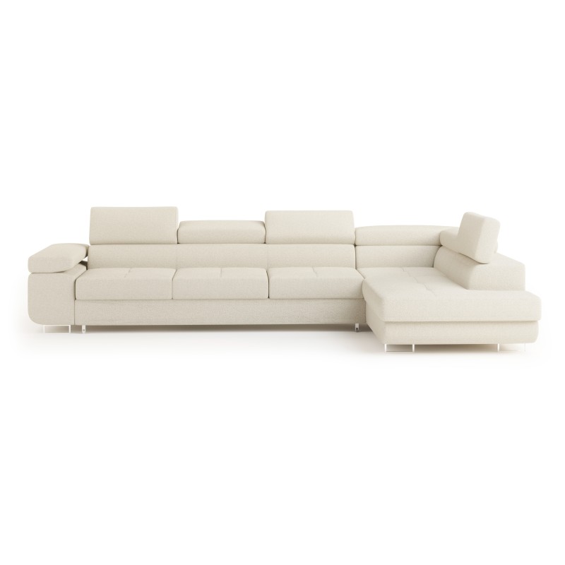 Masseno Narożnik VICENTE z funkcją spania i pojemnikiem na pościel Narozniki L, Rozkładana sofa - Kremowy, QUELLE 02