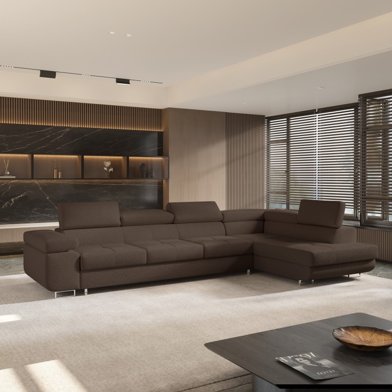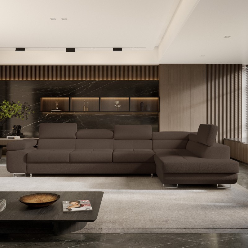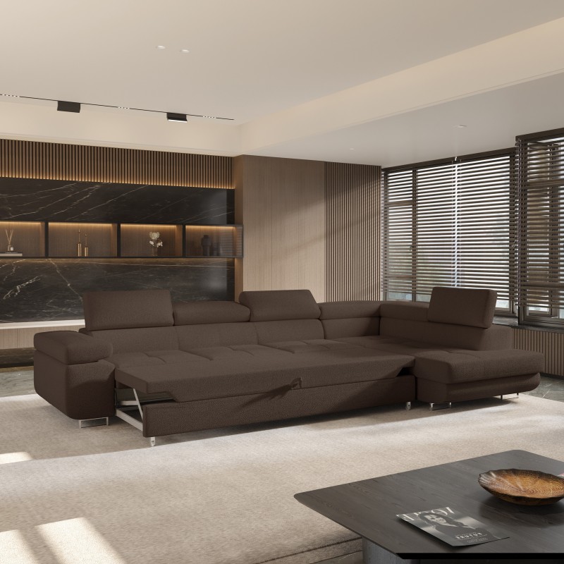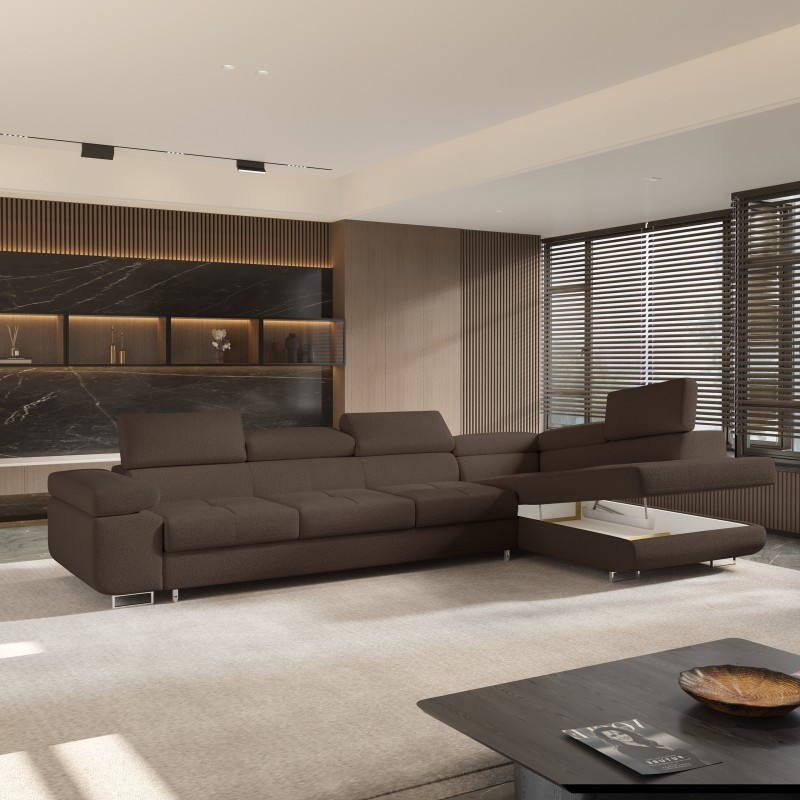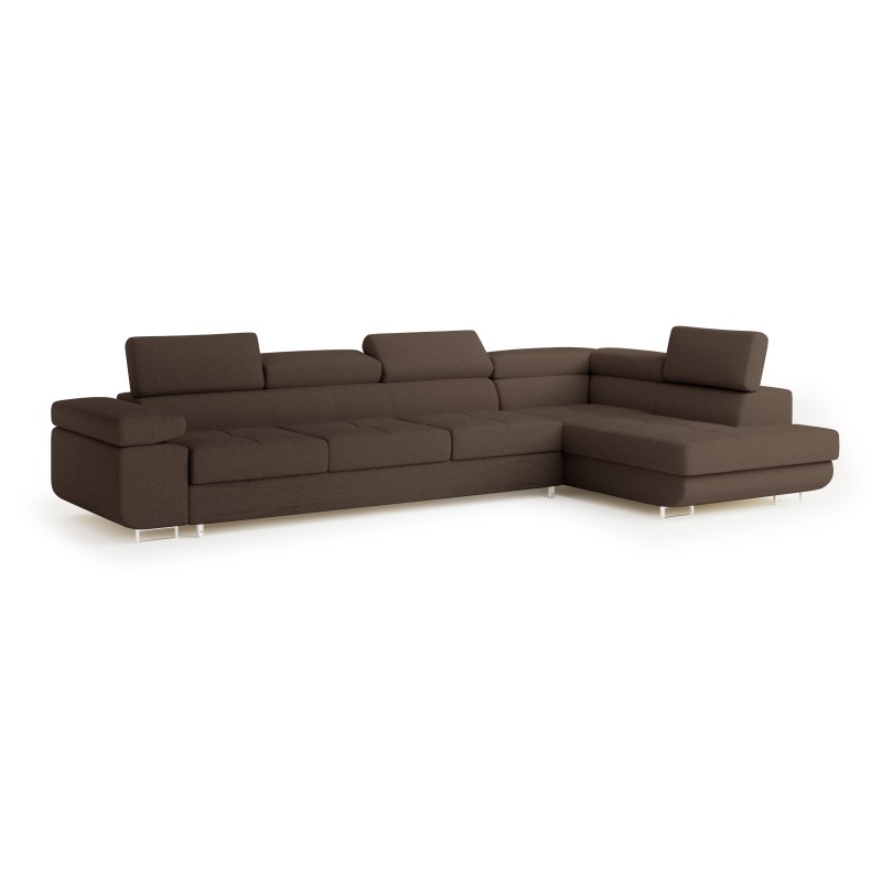 Masseno Narożnik VICENTE z funkcją spania i pojemnikiem na pościel Narozniki L, Rozkładana sofa - Brązowy, QUELLE 25