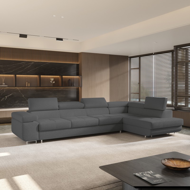 VICENTE to narożnik stworzony dla tych, którzy pragną połączyć nowoczesny design, najwyższy poziom wygody i przestrzeń do wspólnego spędzania czasu. Jego elegancka, dopracowana w każdym detalu forma zachwyca smukłymi liniami, wygodnym podłokietnikiem i regulowanymi zagłówkami, które pozwalają dopasować mebel do indywidualnych preferencji.