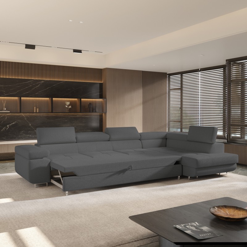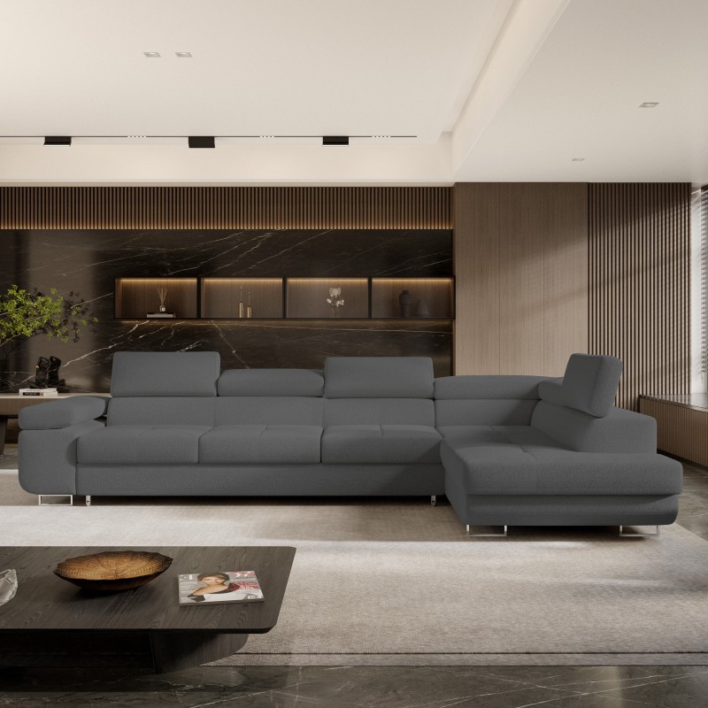 Masseno Narożnik VICENTE z funkcją spania i pojemnikiem na pościel Narozniki L, Rozkładana sofa - Szary, QUELLE 92