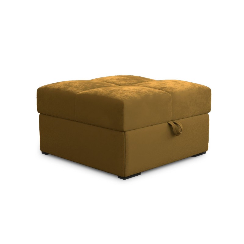 Nowoczesny i wygodny podnóżek do salonu - PUFA MIZA, modna tkanina koloru żółtego, dodatkowy schowek w Twoim salonie