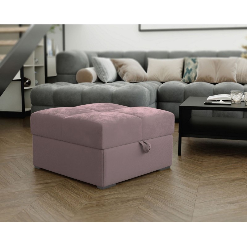 Nowoczesna i stylowa pufa MIZA, dodatkowe wygodne miejsce w Twoim salonie, modna tkanina w kolorze pudrowego różu
