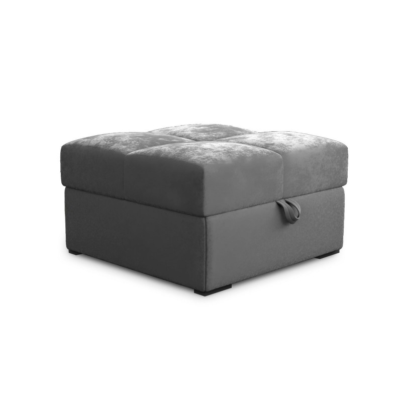Stylowa pufa do salonu - MIZA, tapicerowana modną tkaniną w kolorze jasnoszarym, posiada wygodny schowek na drobiazgi