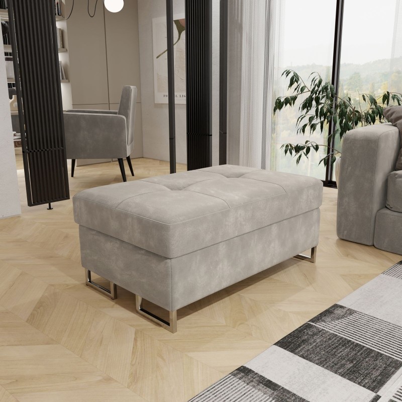 Wysokie nóżki ułatwiają sprzątanie pod meblem, wiele robotów automatycznych nie będzie miało problemu by wjechać pod pufę. Dodatkowo nadają pufie elegancji i szyku.