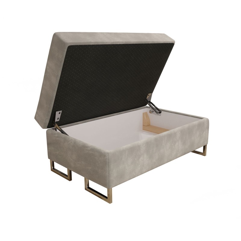 Zyskaj na funkcjonalności dzięki praktycznemu schowkowi z automatem sprężynowym. Dzięki niemu z łatwością przechowasz różne przedmioty, a siedzisko samo nie opada, gwarantując bezpieczny dostęp do sporego pojemnika. Dodatkowo, drewniane wstawki wpływające pozytywnie na stabilność, sprawiają, że pufa jest nie tylko piękna, ale też solidna.