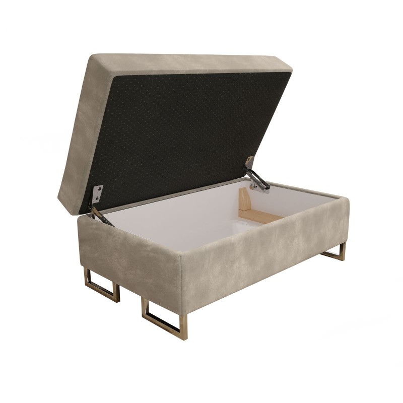 Wygodna PUFA BARLET ze sprężynami falistymi i dużym schowkiem z automatem, kremowy kolor welurowej tapicerki