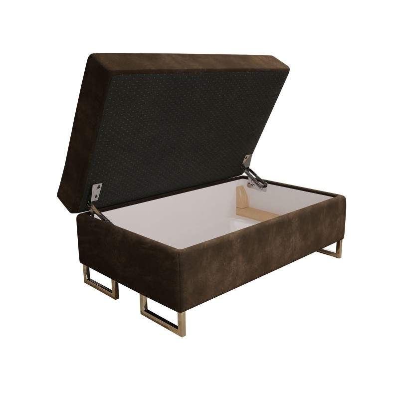 Zyskaj na funkcjonalności dzięki praktycznemu schowkowi z automatem sprężynowym. Dzięki niemu z łatwością przechowasz różne przedmioty, a siedzisko samo nie opada, gwarantując bezpieczny dostęp do sporego pojemnika. Dodatkowo, drewniane wstawki wpływające pozytywnie na stabilność, sprawiają, że pufa jest nie tylko piękna, ale też solidna.