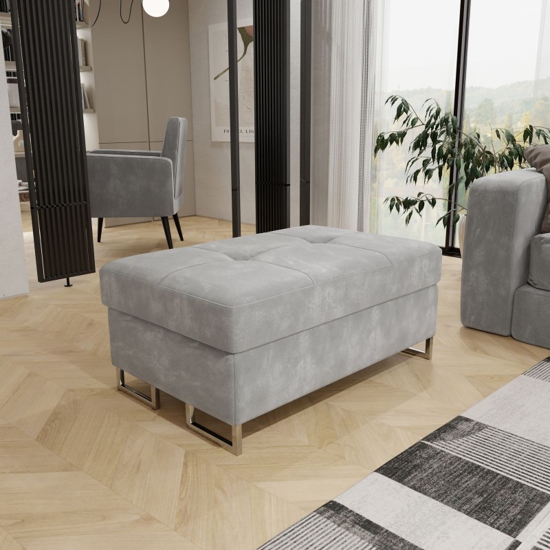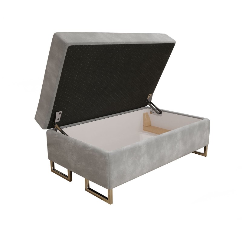 Tapicerowana PUFA BARLET, wygodna ławeczka do przedpokoju, pojemny schowek i welurowa tkanina, kolor jasnoszary