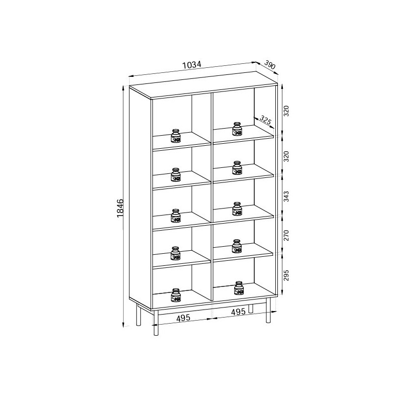 Niezależnie od tego, czy szukasz regału do salonu, domowego biura czy przedpokoju – ten model harmonijnie wpisuje się w każdą aranżację wnętrza, tworząc stylowy porządek, który ułatwia codzienność. Ponadczasowa estetyka i stabilna konstrukcja sprawiają, że nie jest to tylko funkcjonalny mebel, ale trwały towarzysz na lata, który podkreśli Twój indywidualny styl i efektownie wyeksponuje ulubione przedmioty.