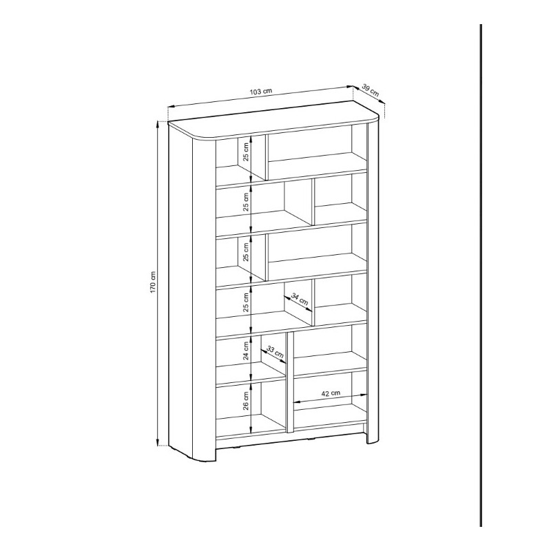 Przemyślany projekt regału AVORIO zachwyca nowoczesnym designem oraz najwyższą jakością wykonania z trwałych materiałów. Dzięki optymalnym wymiarom 103 x 39 x 160 cm, mebel stanowi idealne połączenie oszczędnej formy z wszechstronną przestrzenią do przechowywania, pozwalając na przejrzystą organizację książek czy elementów dekoracyjnych.