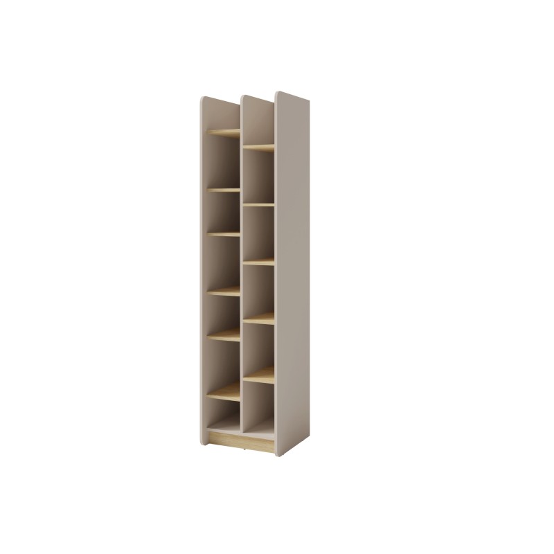 Przemyślany projekt regału VETTA zachwyca nowoczesnym designem oraz najwyższą jakością wykonania z trwałych materiałów. Dzięki optymalnym wymiarom 55 x 42 x 195 cm, mebel stanowi idealne połączenie oszczędnej formy z wszechstronną przestrzenią do przechowywania, pozwalając na przejrzystą organizację książek czy elementów dekoracyjnych.