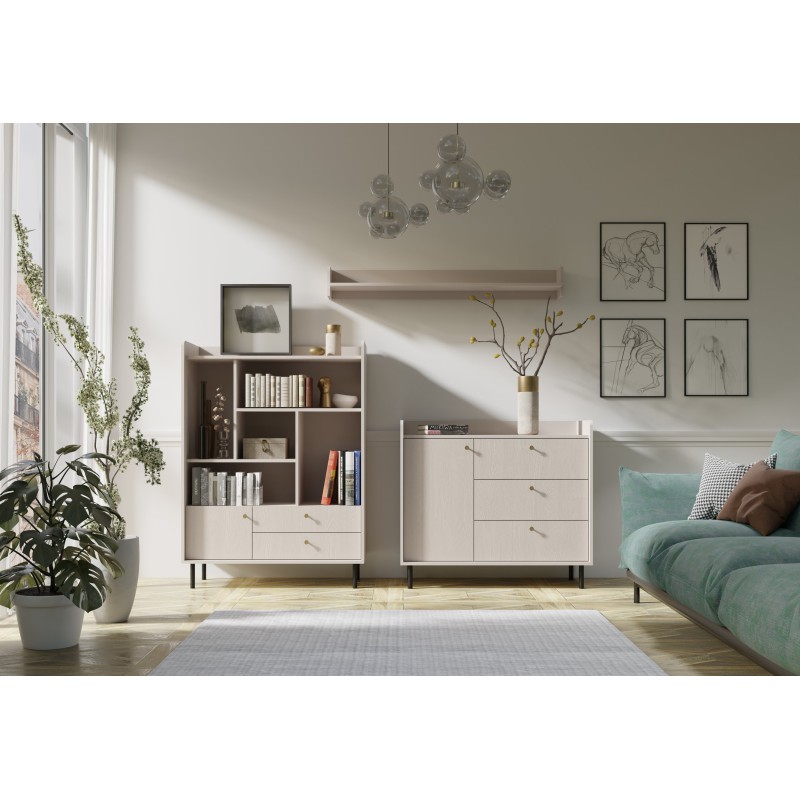 Przemyślany projekt regału ASTREA zachwyca nowoczesnym designem oraz najwyższą jakością wykonania z trwałych materiałów. Dzięki optymalnym wymiarom 103,5 x 42 x 133 cm, mebel stanowi idealne połączenie oszczędnej formy z wszechstronną przestrzenią do przechowywania, pozwalając na przejrzystą organizację książek czy elementów dekoracyjnych.