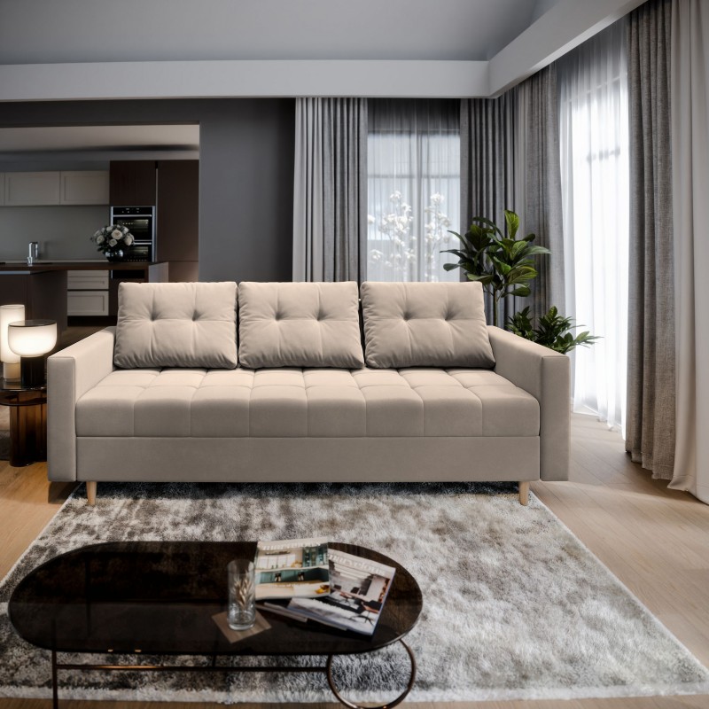 Masseno Sofa MILO z funkcją spania i pojemnikiem na pościel, Rozkładana sofa - Beżowy, PAROS 02
