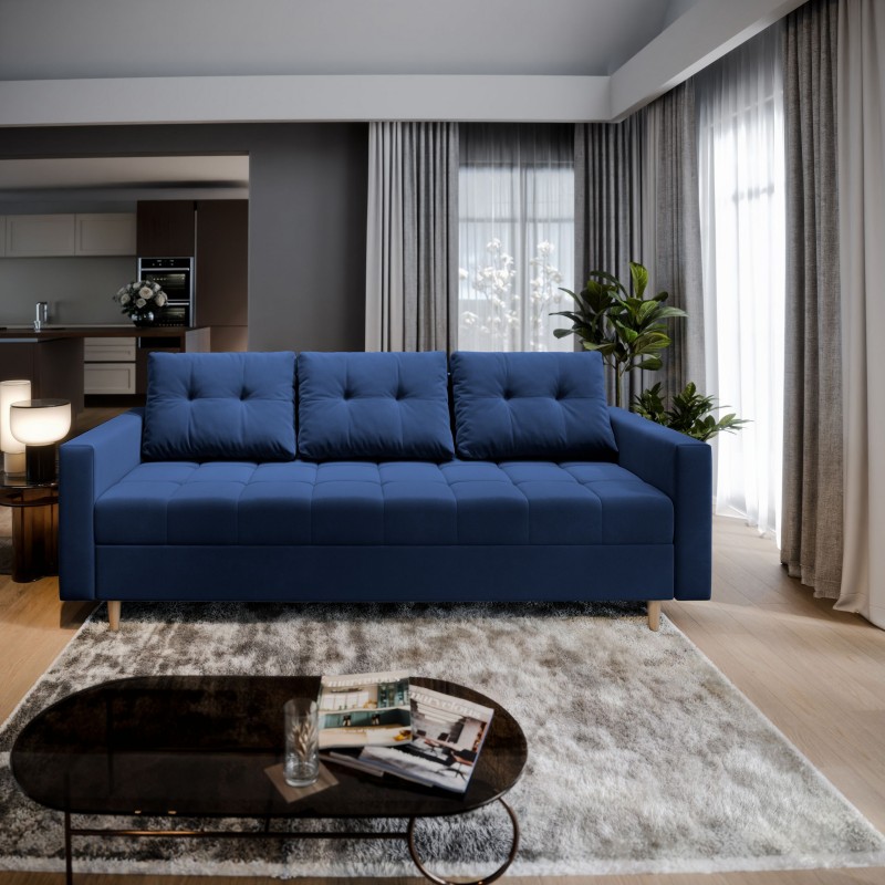 Masseno Sofa MILO z funkcją spania i pojemnikiem na pościel, Rozkładana sofa - Niebieski, KRONOS 09
