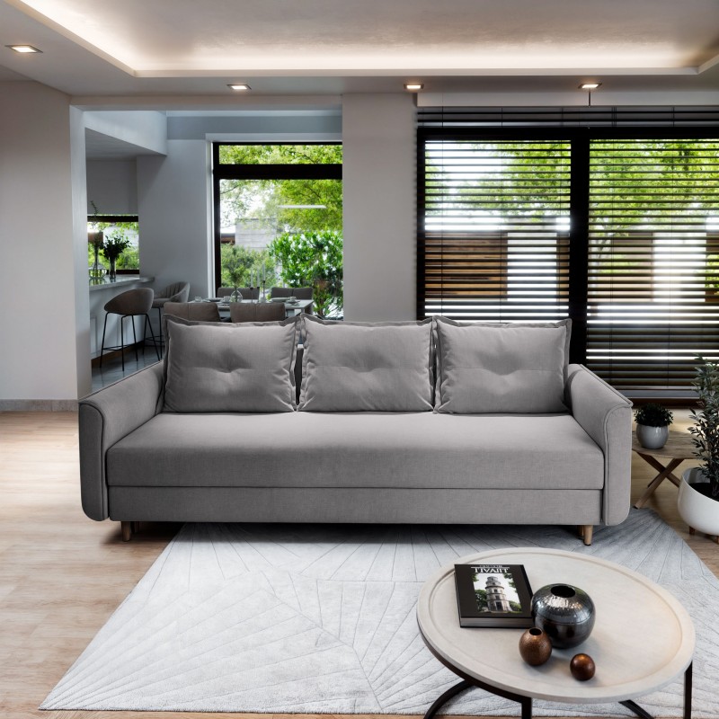 Masseno Sofa NAPOL z funkcją spania i pojemnikiem na pościel, Rozkładana sofa - Jasnoszary, PAROS 05