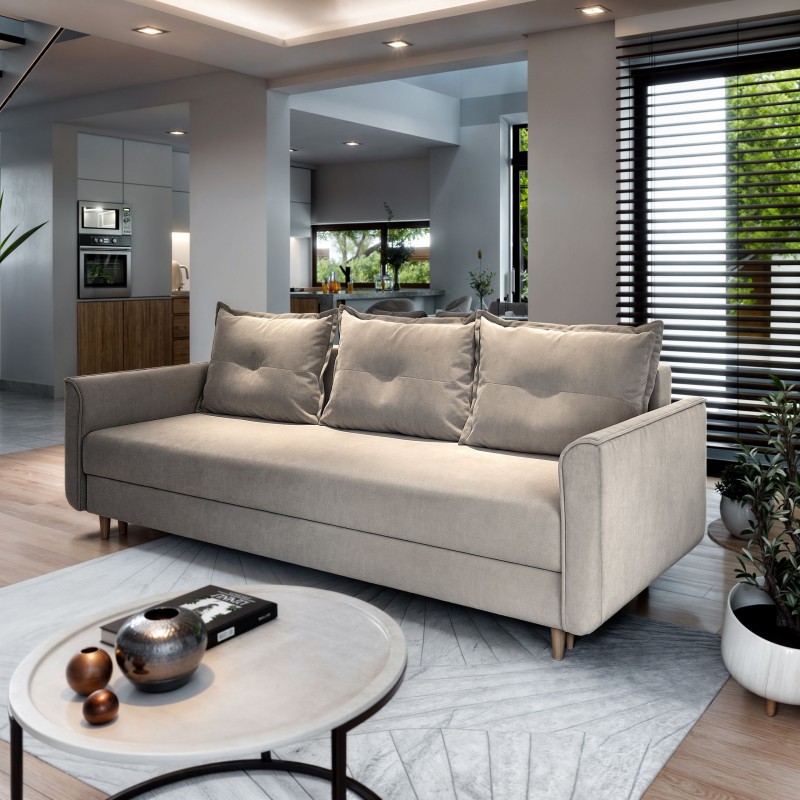 Masseno Sofa NAPOL z funkcją spania i pojemnikiem na pościel, Rozkładana sofa - Beżowy, PAROS 02