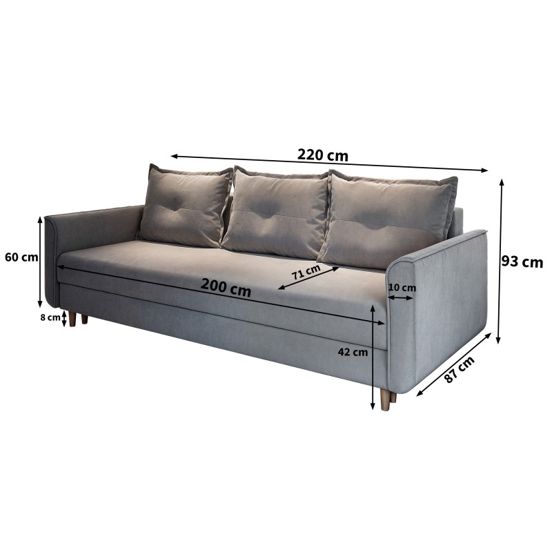 Zapewnij sobie wygodę dla nawet trzech osób i delektuj się chwilami relaksu na naszej rozkładanej sofie. Dzięki funkcji spania, możesz zdrzemnąć się w ciągu dnia lub przenocować niezapowiedzianych gości, oferując im nie tylko komfort, lecz także styl. Funkcjonalność i estetyka spotykają się tutaj w doskonałym połączeniu. Kanapa NAPOL z funkcją spania i pojemnikiem na pościel, jest idealnym wyborem zarówno do codziennego użytku, jak i na niezapowiedziane wizyty Twojej rodziny. Wygodne siedzisko wypełnione wysokoelastyczną pianką nadają sofie NAPOL niepowtarzalny urok, gwarantując przy tym relaks na najwyższym poziomie. Niezależnie od tego, czy odpoczywasz dniu pełnym pracy czy przyjmujesz gości, nasza sofa NAPOL sprawdzi się doskonale.